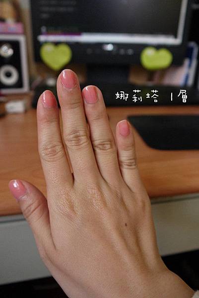 個人覺得娜塔莉,擦一層是粉嫩的粉紅色,